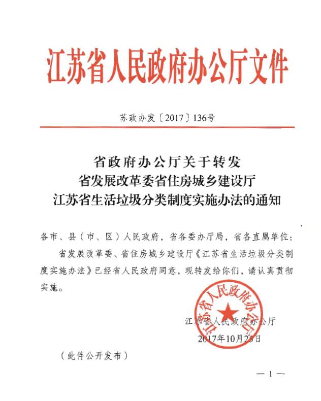 (二)健全法規(guī)標準。推動盡快出臺《江蘇省城鄉(xiāng)生活垃圾處理條例》,制定生活垃圾分類設施配置標準、垃圾分類示范社區(qū)(小區(qū))評價標準、鎮(zhèn)村垃圾分類評價標準、垃圾分類宣傳指導手冊和相關技術導則等標準規(guī)范,建立生活垃圾分類和治理信息管理系統(tǒng)。各地要結合實際制定生活垃圾分類管理制度,對不按要求開展垃圾分類的單位可拒收垃圾并依法進行處罰。