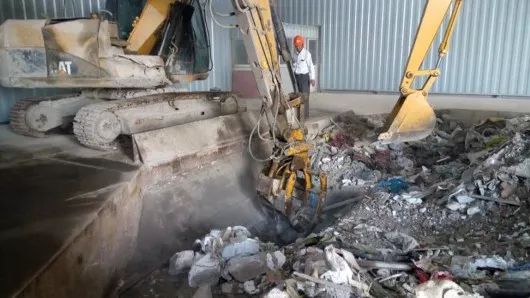 在徐匯區(qū)東南角的景聯(lián)路上,記者找到了這套流水線。整個徐匯區(qū)的裝修垃圾通過清運車輛運輸?shù)竭@里,并被分批倒入一個大型“漏斗”內(nèi),“漏斗”一側(cè)有一個由數(shù)排齒輪組成的“嘴巴”,各種種類、形狀的裝修垃圾經(jīng)過這只“嘴巴”的初步篩選,體積較小的掉入漏斗下方的自動分揀室。