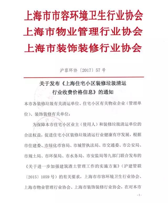 《上海市住宅小區(qū)裝修垃圾清運(yùn)行業(yè)收費(fèi)價格信息》全文內(nèi)容如下:
