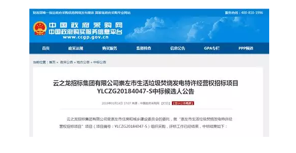 在廣西這樣的西南部地區(qū),垃圾焚燒領(lǐng)域大多剛開始興建,且該項(xiàng)目規(guī)模不小,對(duì)于布局西南有著重要意義。該項(xiàng)目于2018年11月發(fā)布預(yù)審公告,吸引了14家企業(yè)入圍預(yù)審,包括眾多垃圾處理領(lǐng)域的一線名企。到2019年1月14日,項(xiàng)目公布了中標(biāo)候選人——中電國(guó)際新能源控股有限公司(以下簡(jiǎn)稱“中電新能源”)。