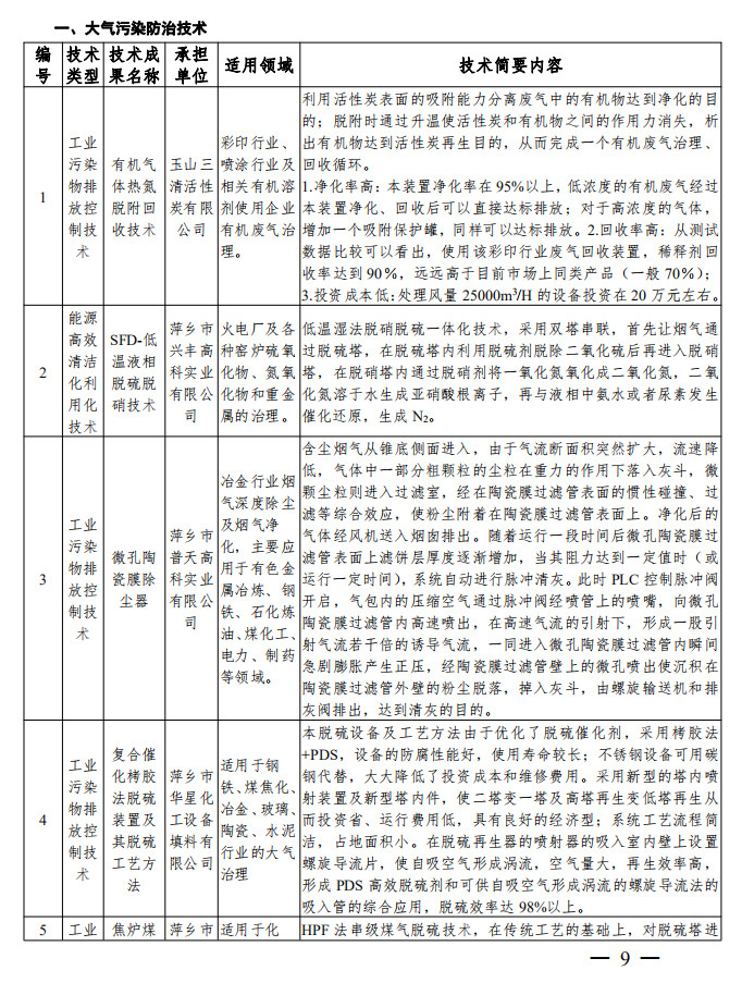 近日,江西省江西省工業(yè)和信息化廳、江西省住房和城鄉(xiāng)建設(shè)廳、江西省科學(xué)技術(shù)廳、江西省水利廳、江西省生態(tài)環(huán)境廳、江西省國有資產(chǎn)監(jiān)督管理委員會等多部門聯(lián)合發(fā)布了江西省(大氣、水、土壤)污染 防治先進(jìn)適用技術(shù)指導(dǎo)目錄(2018年修訂版),全文如下: