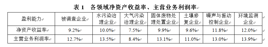 從盈利能力看,被調(diào)查企業(yè)凈資產(chǎn)收益率平均值低于2016年企業(yè)績效評價標(biāo)準(zhǔn)值中工業(yè)企業(yè)凈資產(chǎn)收益率的優(yōu)秀值。與2016年相比,2017年相同樣本企業(yè)凈資產(chǎn)收益率和主營業(yè)務(wù)利潤率均有所下滑。反映我國環(huán)保企業(yè)資產(chǎn)收益能力及獲利水平出現(xiàn)降低趨勢,盈利能力有待提升。