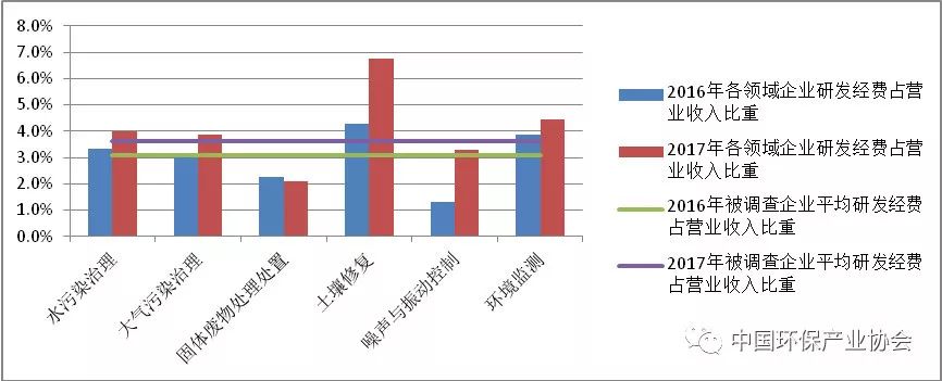 圖7 2016年、2017年列入環(huán)保產(chǎn)業(yè)重點企業(yè)調(diào)查的相同樣本企業(yè)研發(fā)經(jīng)費占營業(yè)收入比重