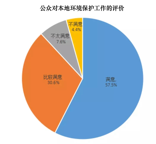 公眾對生態(tài)環(huán)保工作的滿意度繼續(xù)向好,88.1%的受訪者評價生態(tài)環(huán)境保護工作為“滿意”和“比較滿意”,其中麗水的滿意率最高。