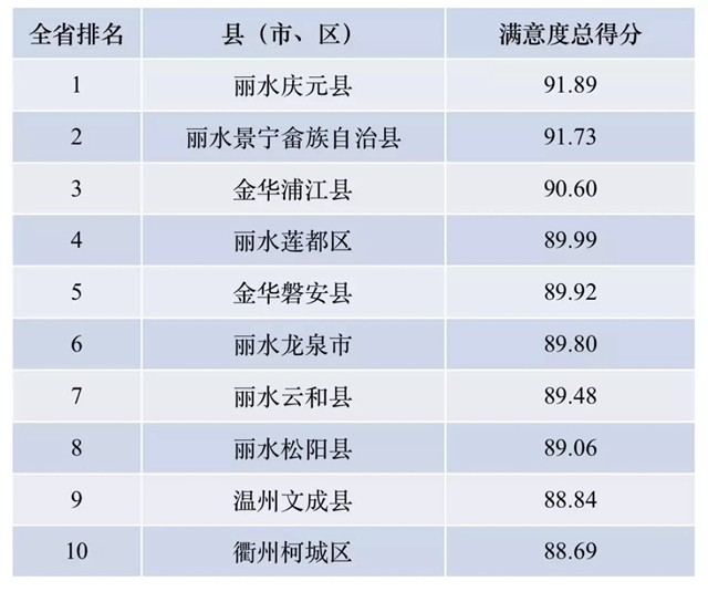 生態(tài)環(huán)境好不好,老百姓說了算。日前,2018年度浙江省生態(tài)環(huán)境公眾滿意度調(diào)查報告出爐。2018年社會公眾生態(tài)環(huán)境滿意度全省平均得分為82.85分,比2017年上升4.31分,實現(xiàn)了連續(xù)7年持續(xù)提升,且平均得分首次突破80分,其中設(shè)區(qū)市得分最高的前三名依次是麗水、衢州、臺州,縣(市、區(qū))得分最高的前三名依次是麗水慶元縣、景寧畬族自治縣和金華浦江縣。