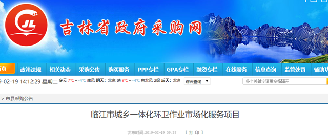 原標題:4.4億 吉林省臨江市城鄉(xiāng)一體化環(huán)衛(wèi)項目預中標公示