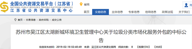 原標題:聯運環(huán)境中標605萬蘇州垃圾分類項目