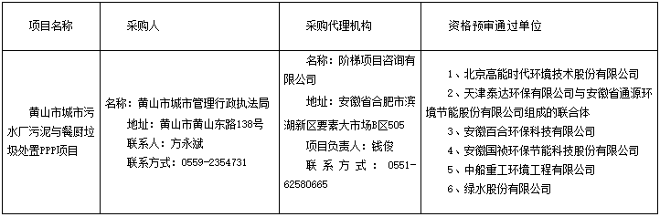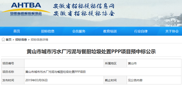 黃山市城市污水廠污泥與餐廚垃圾處置PPP項(xiàng)目發(fā)布預(yù)中標(biāo)公示,天津泰達(dá)環(huán)保有限公司與安徽省通源環(huán)境節(jié)能股份有限公司組成的聯(lián)合體成為預(yù)中標(biāo)社會(huì)資本方。