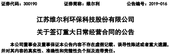 維爾利表示,本合同的簽訂進一步鞏固了公司在國內大中型滲濾液處理項目的市場地位,體現(xiàn)了公司滲濾液處理項目運營服務的能力,有利于公司繼續(xù)積累滲濾液處理項目的運營經驗,為公司市場競爭力及經營業(yè)績的持續(xù)提升發(fā)揮積極作用。