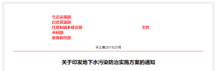 2.制修訂標(biāo)準(zhǔn)規(guī)范。按地下水污染防治工作流程,在調(diào)查、監(jiān)測(cè)、評(píng)估、風(fēng)險(xiǎn)防控、修復(fù)等方面,研究制修訂地下水污染防治相關(guān)技術(shù)規(guī)范、導(dǎo)則、指南等。2019年上半年,研究制定地下水環(huán)境狀況調(diào)查評(píng)價(jià)、地下水環(huán)境監(jiān)測(cè)、地下水污染風(fēng)險(xiǎn)評(píng)估、地下水污染防治分區(qū)劃分、廢棄井封井回填等工作相關(guān)技術(shù)指南;2019年下半年,研究制定污染場(chǎng)地地下水修復(fù)、地下水污染模擬預(yù)測(cè)、地下水污染防滲、地下水污染場(chǎng)地清單等工作相關(guān)技術(shù)導(dǎo)則、指南;2020年,研究制定地下水污染滲透反應(yīng)格柵修復(fù)、地下水污染地球物理探測(cè)、地下水污染源同位素解析、地下水污染抽出-處理等工作相關(guān)技術(shù)指南、規(guī)范。(生態(tài)環(huán)境部牽頭,自然資源部、水利部、農(nóng)業(yè)農(nóng)村部等參與)