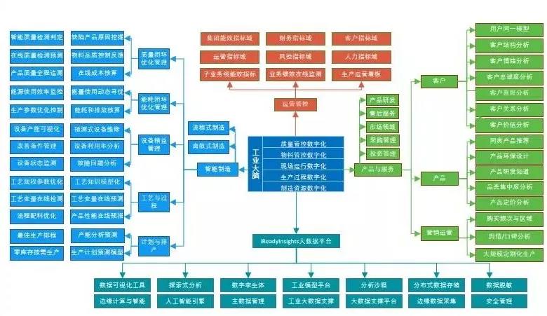 iReadyInsights工業(yè)大腦, 采用數(shù)據(jù)湖、數(shù)字孿生、大數(shù)據(jù)、知識圖譜、模型平臺等技術(shù),具備仿真設備、仿真組態(tài)、工業(yè)模型平臺、分析沙箱、物聯(lián)設備管理等功能。協(xié)助企業(yè)實現(xiàn)數(shù)字化深度應用,面向設備、產(chǎn)線、廠區(qū)級的全過程數(shù)字化表現(xiàn)、全生命周期的數(shù)據(jù)互聯(lián)。滿足企業(yè)工況自感知、工藝自學習、裝備自執(zhí)行、系統(tǒng)自組織的智能化目標。