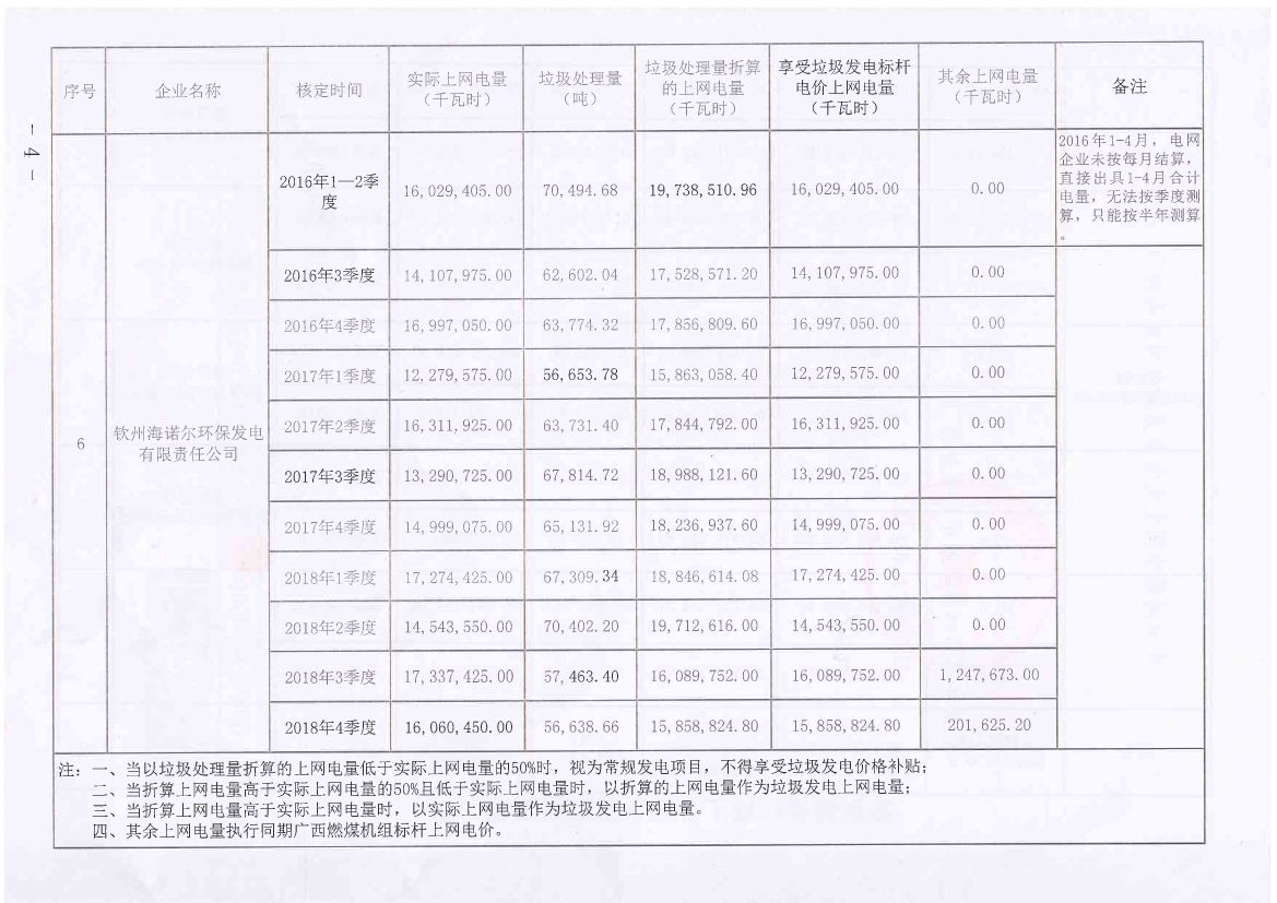 附件:廣西各垃圾焚燒發(fā)電企業(yè)上網電量核定表
