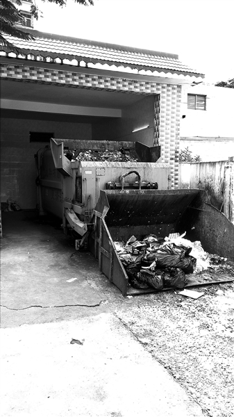 “我們這里沒辦法處理,只負責將運來的垃圾壓縮好運走。”這名值班人員稱,中轉(zhuǎn)站并沒有人員及設施來將居民干濕混合的垃圾進行分類處理。事實上,除了建筑垃圾外,所有混合類生活垃圾都可放入該中轉(zhuǎn)垃圾箱。記者注意到,該中轉(zhuǎn)垃圾箱也同樣沒有分為干濕兩區(qū),所有垃圾在入箱中都統(tǒng)一由機器壓縮后運走。