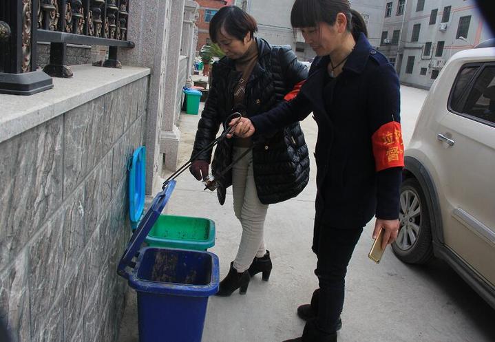 按照制度設(shè)計(jì),每戶村民需從源頭分類、定時(shí)定點(diǎn)投放。剛開始村干部、黨員代表、婦聯(lián)成員每天定崗輪值,在垃圾投放點(diǎn)現(xiàn)場宣傳,指導(dǎo)村民投放垃圾。同時(shí),根據(jù)具體情況,黨員、代表就近、就便、就親負(fù)責(zé)3-10戶村民,并由婦聯(lián)成員開展每天一次的入戶檢查,做好評(píng)比記錄,在公告欄上張貼。