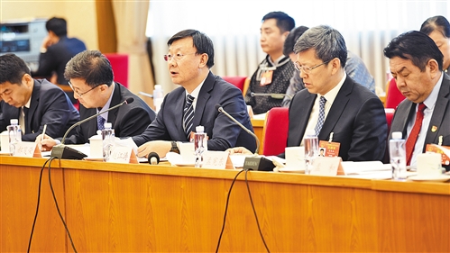 上圖 3月12日,人大內(nèi)蒙古代表團(tuán)舉行全體會(huì)議。全國(guó)人大代表、內(nèi)蒙古自治區(qū)包頭市市長(zhǎng)趙江濤(中)表示,生態(tài)文明建設(shè)利國(guó)利民。 本報(bào)記者 李景錄攝左圖 3月10日,全國(guó)政協(xié)民建界別在駐地舉行小組會(huì)議。會(huì)前,全國(guó)政協(xié)委員蒙曉靈、董新光、賴明勇(從右至左)就“如何探索生態(tài)優(yōu)先、綠色發(fā)展為導(dǎo)向的新路子”展開(kāi)...