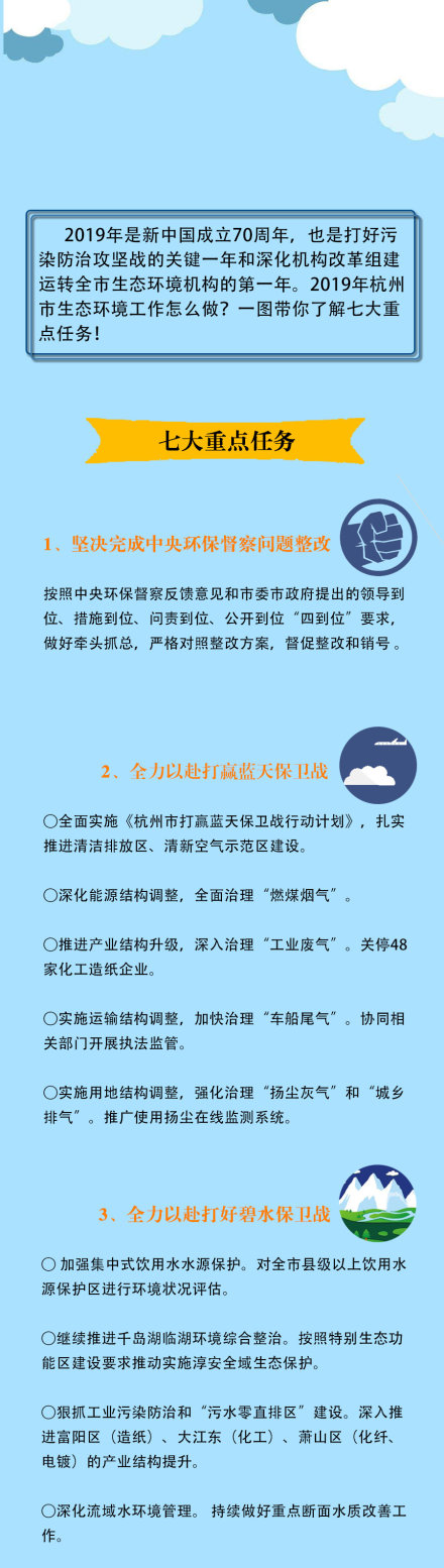 2019年是新中國成立70周年也是打好污染防治攻堅(jiān)戰(zhàn)的關(guān)鍵一年深化機(jī)構(gòu)改革組建運(yùn)轉(zhuǎn)全市生態(tài)環(huán)境機(jī)構(gòu)的第一年2019年杭州生態(tài)環(huán)境工作有哪些重點(diǎn)?一張圖帶你了解!↓↓↓