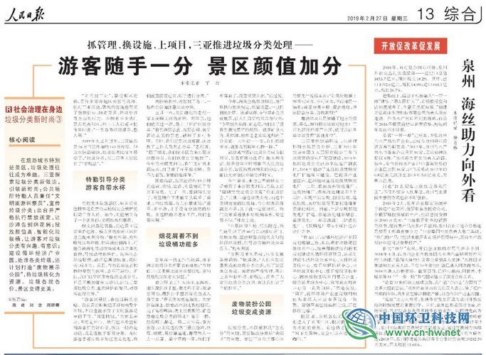 在旅游城市特別是景區(qū),垃圾處理往往成為難題。三亞探索垃圾分類新做法,引領(lǐng)新時(shí)尚:公共場(chǎng)所特勤人員兼任“文明旅游糾察員”,宣傳垃圾分類;出臺(tái)并嚴(yán)格執(zhí)行禁放規(guī)定,讓沙灘告別煙花屑;投放顏值高、智能化垃圾桶,讓游客對(duì)垃圾分類有興趣、有意識(shí);建設(shè)循環(huán)經(jīng)濟(jì)產(chǎn)業(yè)園,處理各類垃圾,還計(jì)劃打造“廢物展示公園”,將垃...