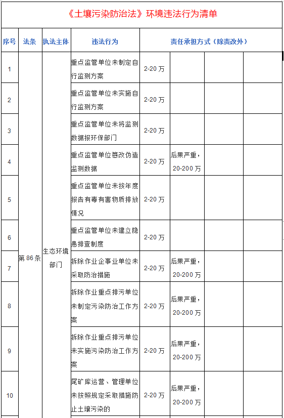 《土壤污染防治法》列舉了近50種環(huán)境違法行為,其中對(duì)應(yīng)的行政執(zhí)法主體包括生態(tài)環(huán)境主管部門、農(nóng)業(yè)農(nóng)村主管部門、林業(yè)與草原主管部門、自然資源主管部門、工業(yè)和信息化主管部門等等?!锻寥牢廴痉乐畏ā吩诜韶?zé)任方面擴(kuò)充了行政拘留的適用范圍,并對(duì)多個(gè)環(huán)境違法行為設(shè)定“雙罰”,加大了對(duì)違法者的處罰力度。筆者對(duì)《土...