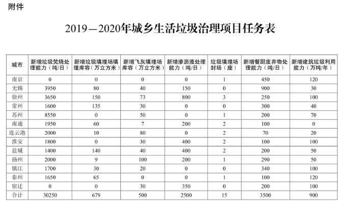 江蘇分類垃圾進(jìn)入“強(qiáng)制時(shí)代”,餐廚垃圾如何處理?建筑垃圾資源化利用怎樣進(jìn)行?江蘇省政府日前發(fā)布了《江蘇省城鄉(xiāng)生活垃圾治理工作實(shí)施方案》(簡稱方案),根據(jù)方案,到2020年底,全省生活垃圾無害化處理設(shè)施處理能力滿足需求,無害化處理能力達(dá)到8.5萬噸/日以上,城鄉(xiāng)生活垃圾無害化處理率達(dá)到98%以上,除按...