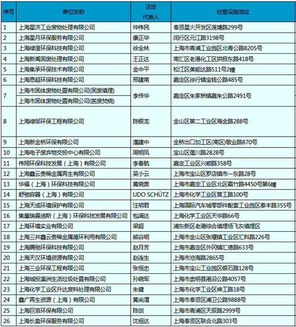 日前上海生態(tài)環(huán)保局發(fā)布了危險廢物經(jīng)營許可證名單,其中涉及26家公司,具體內(nèi)容如下:原標(biāo)題:危險廢物經(jīng)營許可證名單及價格公開