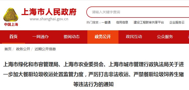 日前,上海市綠化和市容管理局、上海市農(nóng)業(yè)委員會、上海市城市管理行政執(zhí)法局聯(lián)合發(fā)布了關(guān)于進(jìn)一步加大餐廚垃圾收運(yùn)處置監(jiān)管力度,嚴(yán)厲打擊非法收運(yùn)、嚴(yán)禁餐廚垃圾飼養(yǎng)生豬等違法行為的通知,詳情如下:各區(qū)綠化市容管理部門、農(nóng)委、城管執(zhí)法部門:為進(jìn)一步貫徹落實黨中央、國務(wù)院以及上海市委、市政府對非洲豬瘟防控工作的...