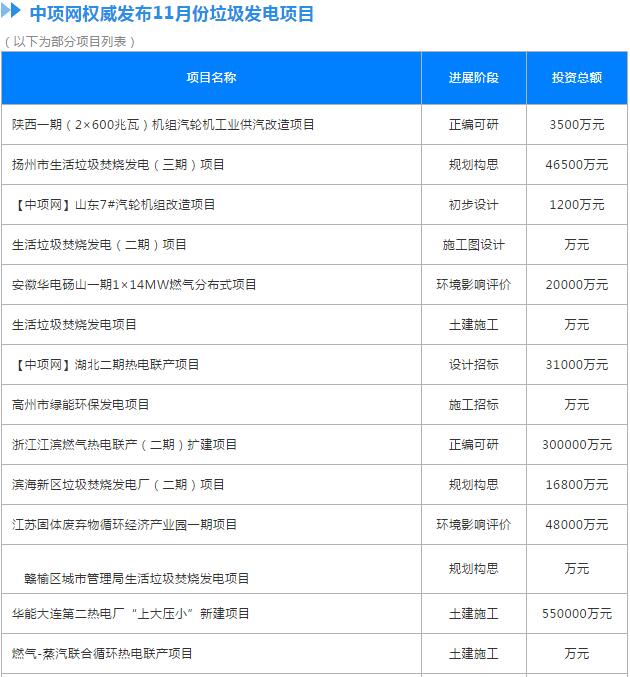 11月份全國擬在建垃圾發(fā)電項目1 華能國際電力開發(fā)公司銅川照金電廠一期(2×600兆瓦)機(jī)組汽輪機(jī)工業(yè)供汽改造項目預(yù)算總投資額:3500萬元進(jìn)展階段:正編可研項目所在地:陜西省銅川市項目建設(shè)詳情:華能國際電力開發(fā)公司銅川照金電廠一期(2×600兆瓦)機(jī)組汽輪機(jī)工業(yè)供汽改造項目,1、項目建設(shè)地址:陜西...