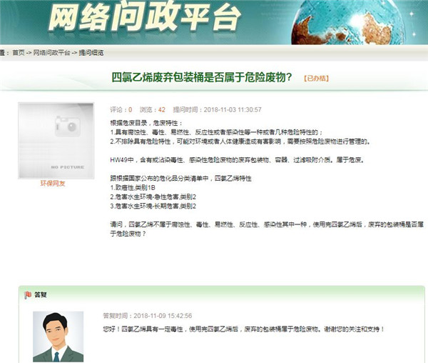 四氯乙烯廢棄包裝桶是否屬于危險廢物?根據(jù)危廢目錄,危廢特性:1.具有腐蝕性、毒性、易燃性、反應(yīng)性或者感染性等一種或者幾種危險特性的;2.不排除具有危險特性,可能對環(huán)境或者人體健康造成有害影響,需要按照危險廢物進行管理的。HW49中,含有或沾染毒性、感染性危險廢物的廢棄包裝物、容器、過濾吸附介質(zhì)。屬于...
